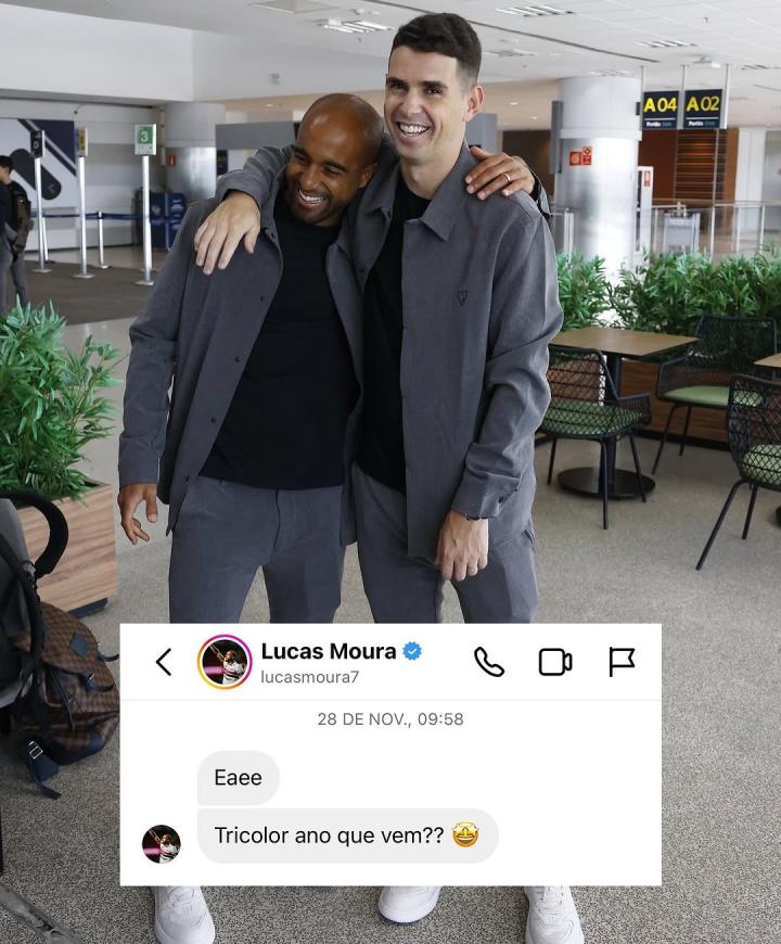 合照中的聊天对话显示,去年11月28日,小卢卡斯就给奥斯卡发送消息询问他明年是否回归圣保罗。