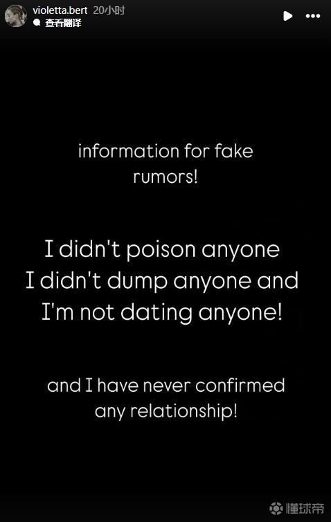 对此维奥莱塔-伯特在社交媒体上写道:“我要辟谣!我没有给任何人下药!我没有甩任何人,也没有和任何人在约会,而且,我从未和任何人确立过关系!”