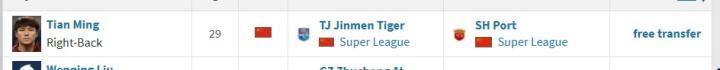据德国转会市场消息,前天津津门虎后卫明天自由身加盟上海海港。