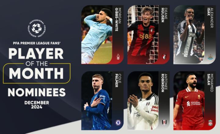 北京时间1月9日,PFA(英格兰职业球员工会)公布了英超12月最佳球员的候选名单,萨拉赫、帕尔默、伊萨克等人入选。