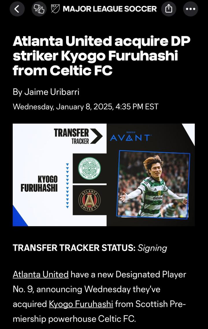 据悉,美职联官网发布了日本国脚古桥亨梧加盟亚特兰大联的消息,之后迅速删除,随后美职联官网进行了道歉,同时表明是另一名日本球员加盟了亚特兰大联。