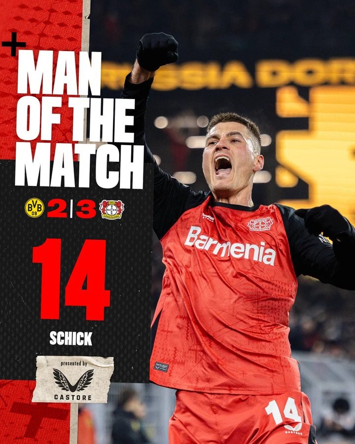 在今天凌晨进行的德甲第16轮比赛中,勒沃库森客场3-2击败多特,其中希克完成了梅开二度,赛后,他被勒沃库森官方评为本场比赛队内最佳球员。