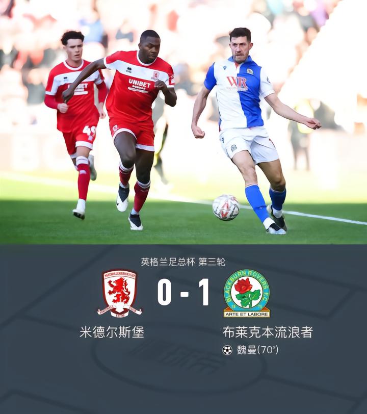 米德尔斯堡0-1布莱克本无缘晋级,魏曼制胜球