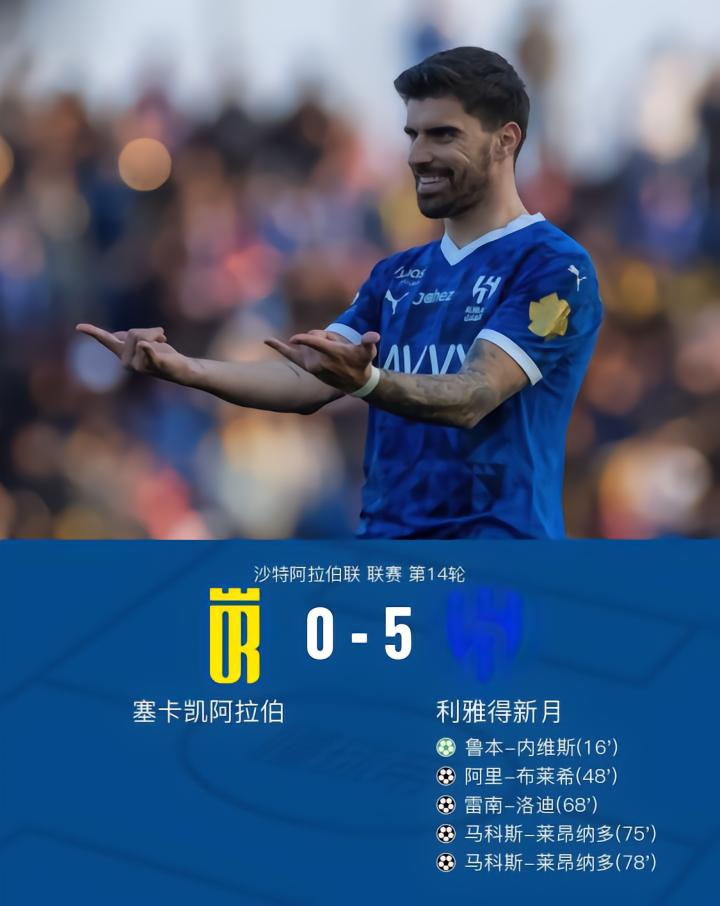 利雅得新月5-0塞卡凯阿拉伯,莱昂纳多双响,雷南-洛迪传射