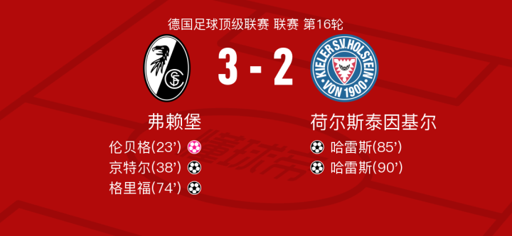 北京时间1月11日弗赖堡vs荷尔斯泰因基尔,哈雷斯得到全场最高的8.5分,吉戈维奇得到全场最低的6.1分