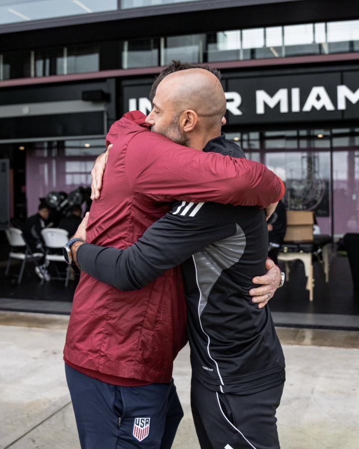 北京时间1月12日凌晨,迈阿密国际官方晒照,美国国家队主帅波切蒂诺造访俱乐部,与马斯切拉诺见面并互换球衣。