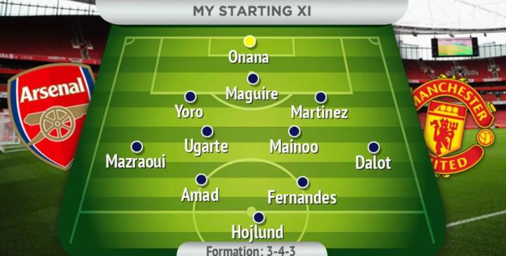 记者Steven Railston:奥纳纳、约罗、马奎尔、利桑德罗-马丁内斯、乌加特、梅努、马兹拉维、阿马德、霍伊伦、B费、达洛特