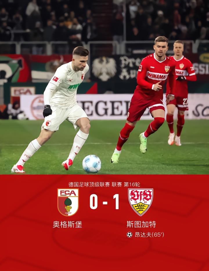 在德国足球顶级联赛第16轮的较量中,奥格斯堡坐镇主场迎战斯图加特。比赛中,斯图加特的昂达夫成功破门,为球队取得领先。最终,斯图加特以1比0小胜奥格斯堡,客场全取三分。