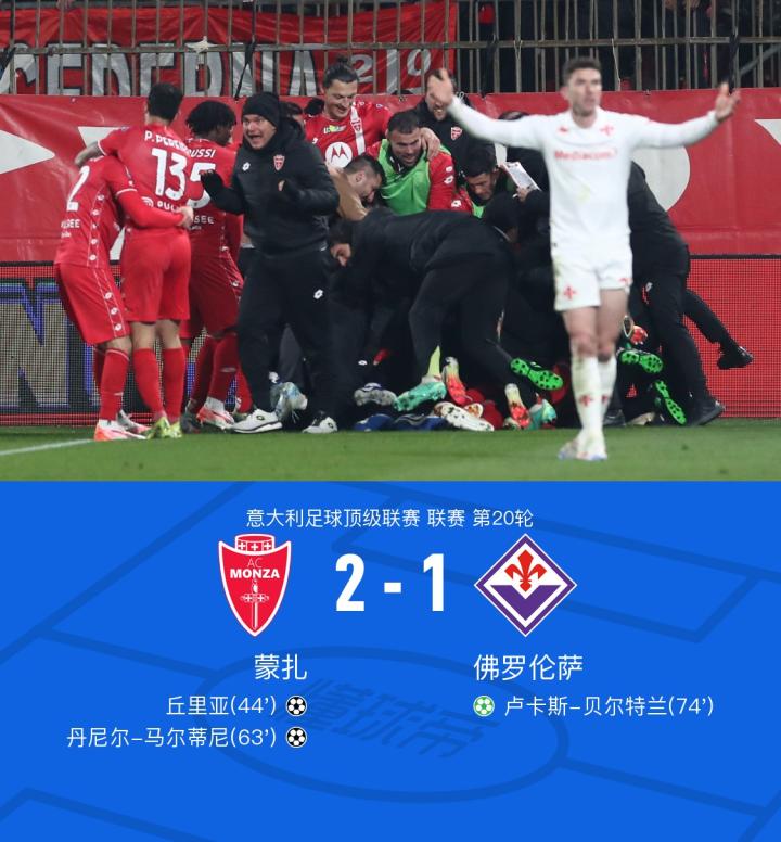 蒙扎2-1佛罗伦萨迎来主场首胜,丹尼尔-马尔蒂尼破门,丘里亚建功