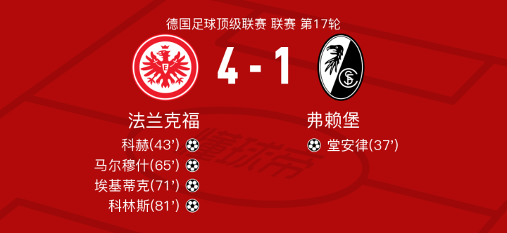 北京时间1月15日法兰克福vs弗赖堡,马尔穆什得到全场最高的9.1分,达胡德得到全场最低的5.8分