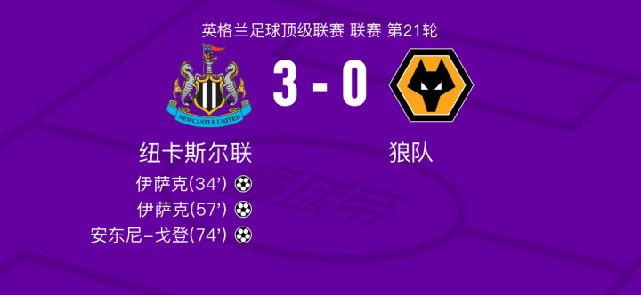 北京时间1月16日纽卡斯尔联vs狼队,伊萨克得到全场最高的9.1分,贡萨洛-格德斯得到全场最低的6.0分