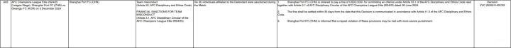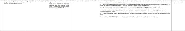 北京时间1月14日,亚足联官方公布了最新的纪律处罚公告。其中,上海海港队因在亚冠对阵光州的比赛中单场吃到6张黄牌被罚款3500美元,海港队员魏震则因直红出场而受到罚款2000美元+禁赛3场的处罚。