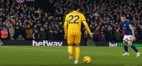第45分钟,疼,伍尔芬登踹到若昂-佩德罗的大腿