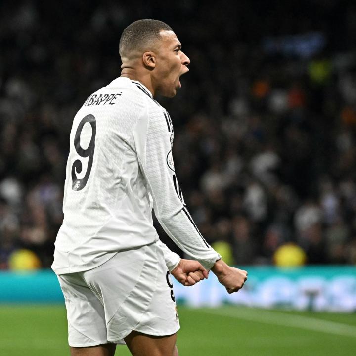 国王杯1/8决赛,皇家马德里主场对阵塞尔塔,上半场姆巴佩破门为皇马取得领先,斩获国王杯首球,至此,姆巴佩本赛季代表皇马参加六项赛事都有进球。