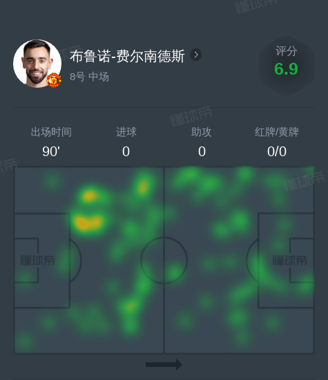 北京时间1月17日曼联vs南安普顿,布鲁诺-费尔南德斯2次关键传球,5次射门。
