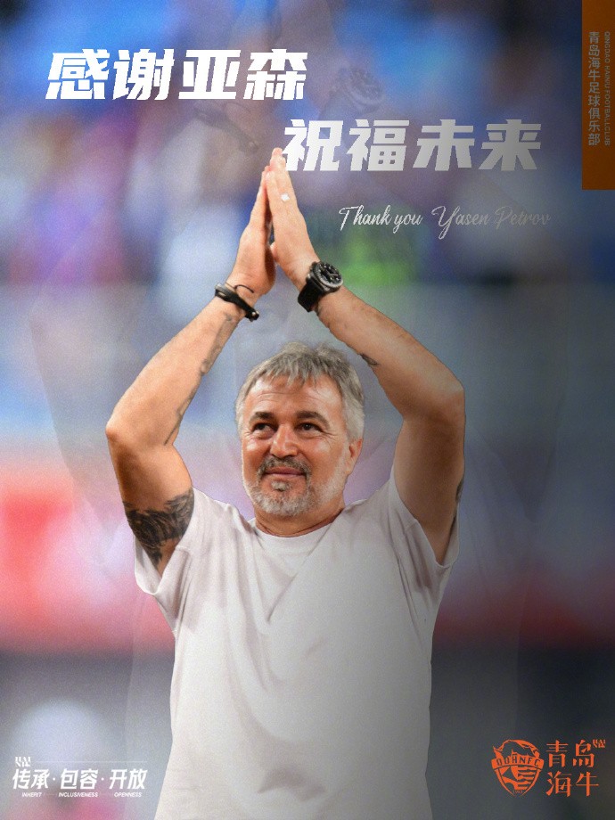 经友好协商,亚森-彼得罗夫(Yasen Petrov)不再担任青岛海牛一线队主教练,其团队成员乔罗-伊列夫(Georgi Iliev)、亚历山大-乔尔介夫(Aleksandar Georgiev)一同离任,俱乐部感谢亚森及其教练组为球队做出的贡献,愿其未来一切顺利。