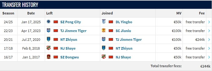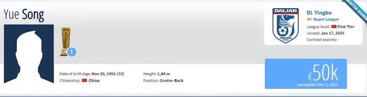 德转更新,原深圳新鹏城后卫宋岳自由身加盟大连英博。