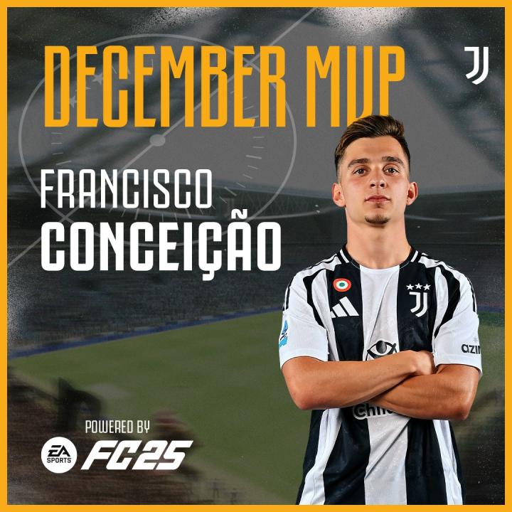 弗朗西斯科-孔塞桑连续第三次荣获月度最佳球员奖项:继10月和11月之后,这位斑马军团的7号球员当选2024年最后一个月的最佳球员。