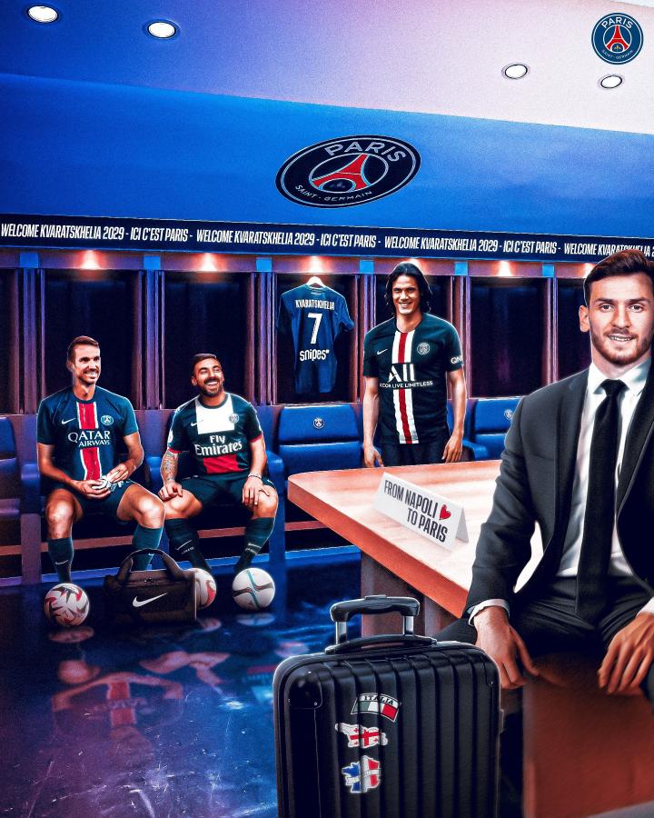 巴黎圣日耳曼足球俱乐部官方更新社媒,晒出一张海报,海报中的四名球员均从那不勒斯购入。