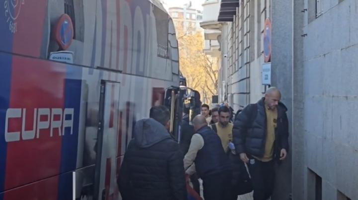 巴萨球员中午抵达西班牙首都,准备今晚与赫塔费进行联赛对决,但巴萨方面对在机场和前往集中酒店(位于马德里的国际酒店)的巴士途中没有任何警察护送感到不满。