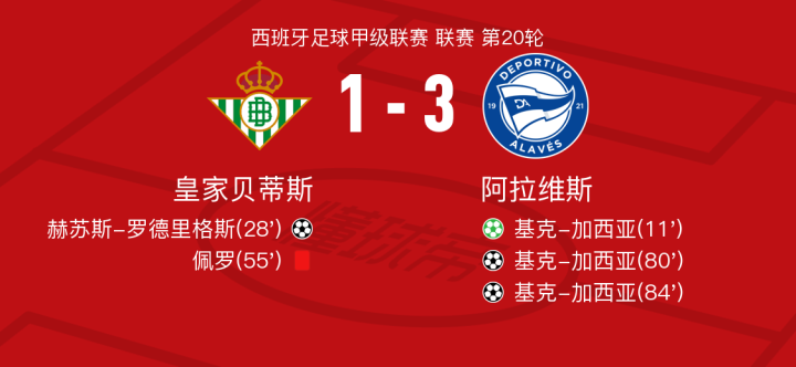 北京时间1月19日皇家贝蒂斯vs阿拉维斯,基克-加西亚得到全场最高的9.5分,佩罗得到全场最低的4.3分