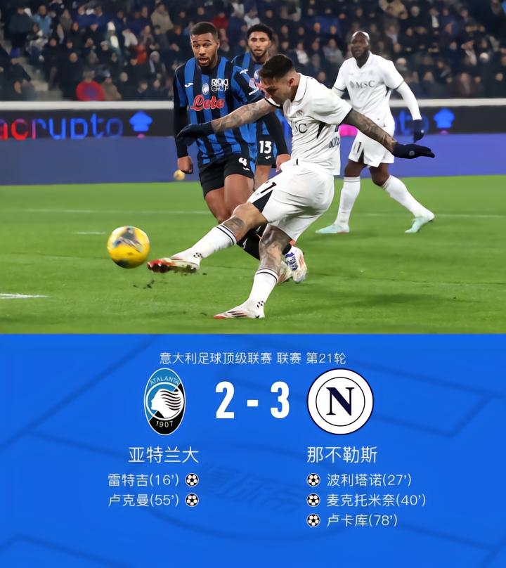 那不勒斯3-2逆转亚特兰大,安古伊萨两传,卢卡库头球制胜