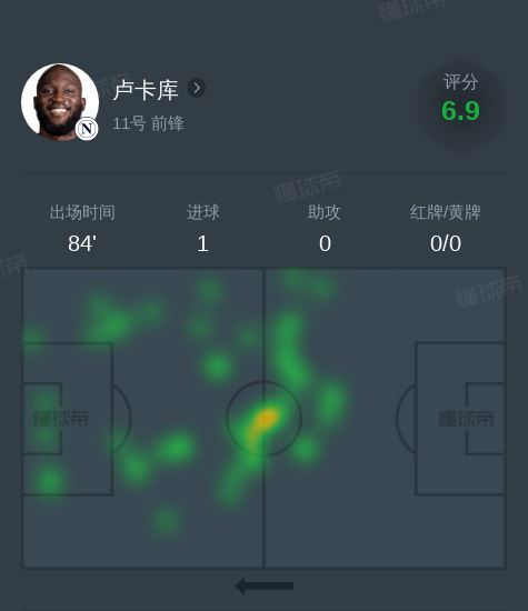 北京时间1月19日亚特兰大vs那不勒斯,卢卡库贡献1球,2次射门。