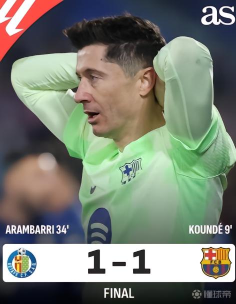 随后是巴塞罗那,他们同样前往了马德里南部地区,挑战赫塔费。然而在这个近期战绩不佳的球场,巴萨再次没有获得胜利,最终被对手1-1逼平。