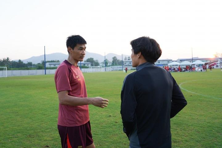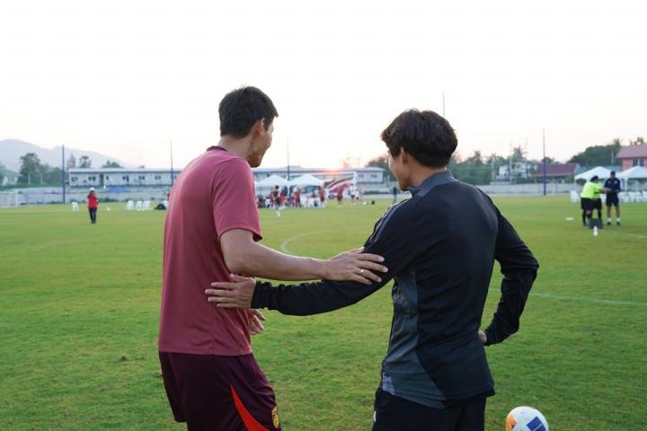 全北现代官方写道:“久别重逢的朋友,在昨天与中国U20国家队的练习比赛中,曾在2009赛季效力于全北现代的两位球员,现在担任教练的万厚良和球员崔喆淳久别重逢,愉快地相互问候。”