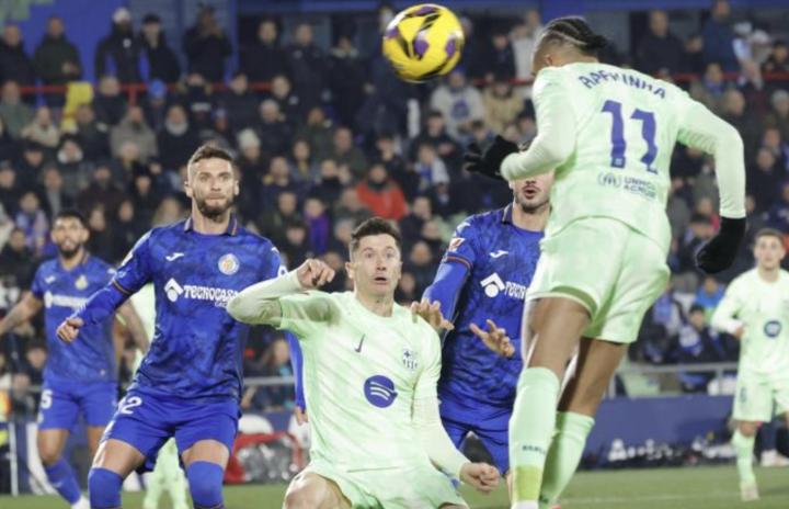 巴塞罗那在客场1-1战平赫塔费,球队三叉戟莱万多夫斯基、拉菲尼亚和亚马尔全场仅射正一次。