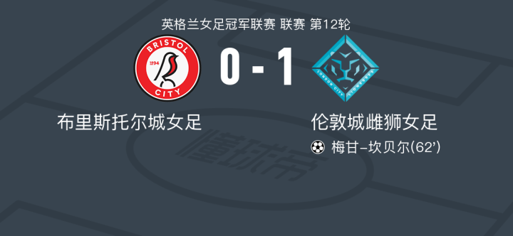 布里斯托尔城女足0-1伦敦城雌狮女足,沈梦雨替补未登场