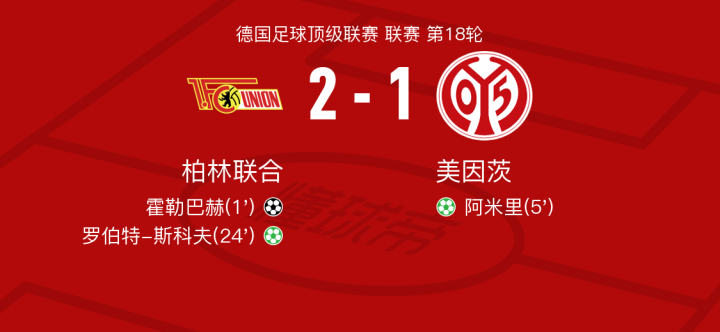 北京时间1月19日柏林联合vs美因茨,霍勒巴赫得到全场最高的7.8分,丹尼-达科斯塔得到全场最低的5.9分