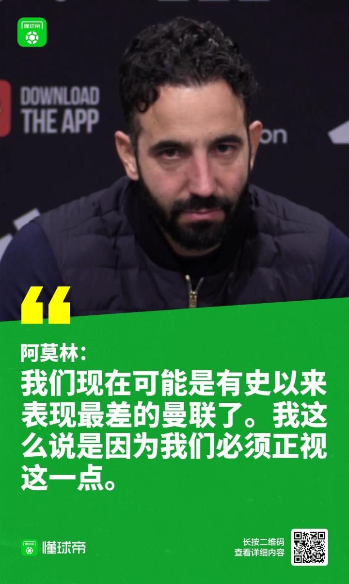 在10场英超比赛里,我们只赢了2场,我心里很清楚。要是曼联球迷都为此难受,那你们想想我的感受吧。你们迎来了一位新教练,可输的比赛比上一任还多,这一点我心里太清楚了。就像我之前说的,不管怎么样我都不会改变(战术理念),我相信我们最终能够取得成功。但我们得先熬过这段艰难时期,我可不是天真盲目,我很清楚我们现在必须挺过去。我们现在可能是有史以来表现最差的曼联了,我知道你们想要吸引眼球的新闻标题,但我这么说是因为我们必须正视这一点,然后做出改变。