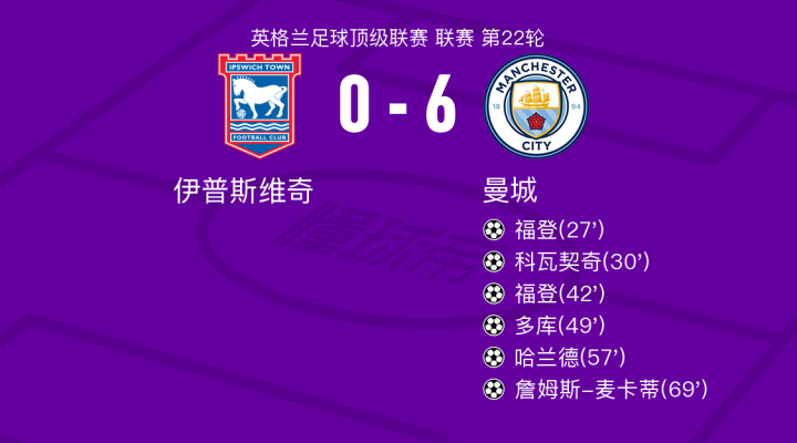 北京时间1月20日伊普斯维奇vs曼城,科瓦契奇得到全场最高的9.6分,戈弗雷得到全场最低的5.7分
