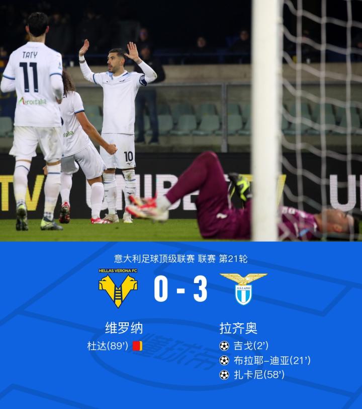 拉齐奥3-0完胜维罗纳,吉戈开场闪击,扎卡尼、迪亚传射建功