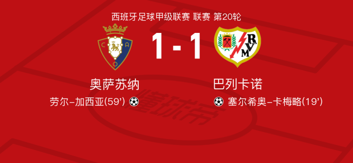 北京时间1月20日奥萨苏纳vs巴列卡诺,鲁文-加西亚得到全场最高的7.6分,巴利乌得到全场最低的6.3分