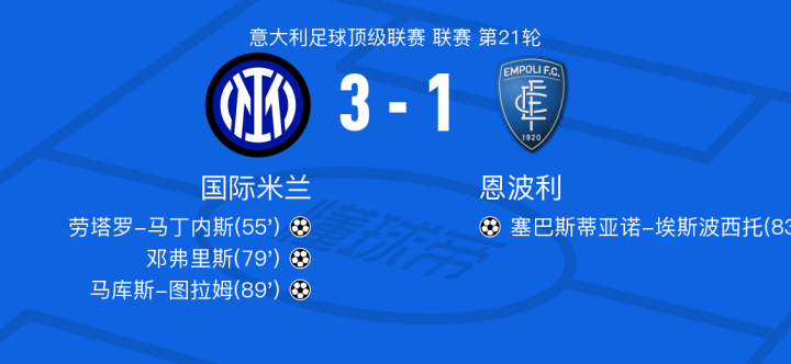 北京时间1月20日国际米兰vs恩波利,两队赛后技术统计如下:
