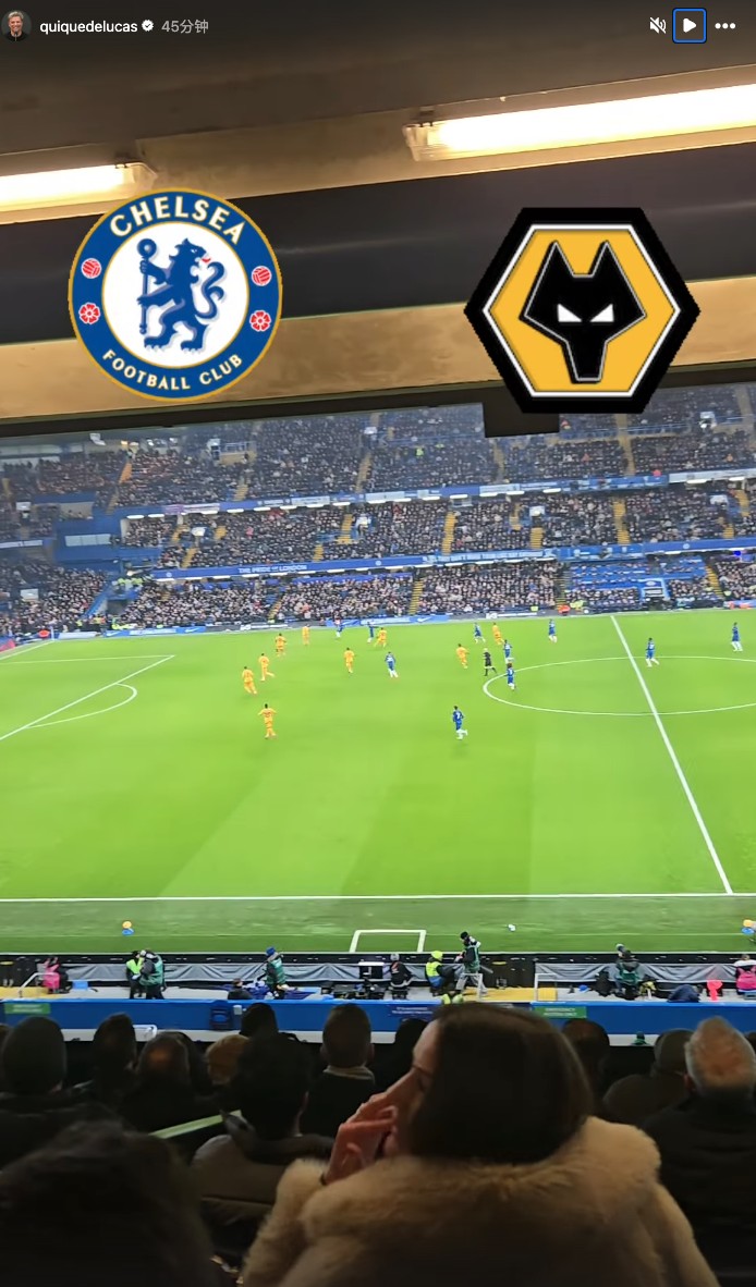 北京时间1月21日凌晨,切尔西主场对阵狼队,赛前,加纳乔经纪公司Lead3rs的老板之一Quique De Lucasz在社交媒体晒出了他在斯坦福桥现场观看比赛的动态。
