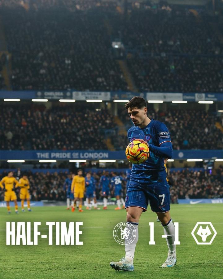 此役主场对阵狼队,切尔西凭借阿达拉比奥尤的进球取得1-0领先,上半场补时阶段,切尔西被狼队后卫多尔蒂攻破球门,比分被扳平。