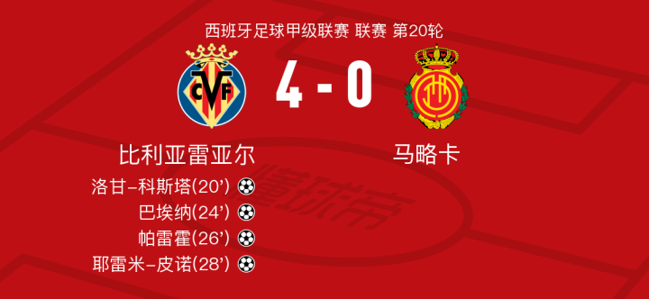 北京时间1月21日比利亚雷亚尔vs马略卡,帕雷霍得到全场最高的9.0分,达尼-罗德里格斯得到全场最低的6.1分
