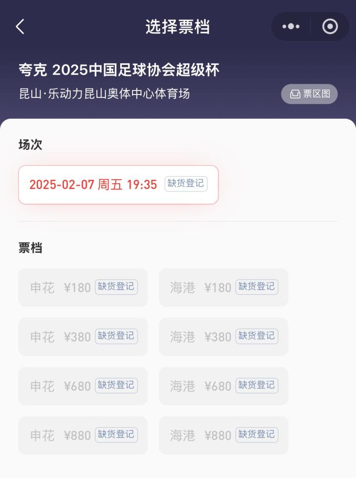 北京时间1月22日,据售票平台信息显示,超级杯上海德比的门票已经售罄,本场比赛将在昆山奥体中心举行。
