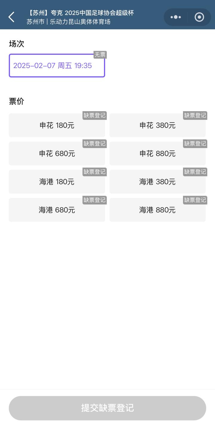 据相关售票平台信息显示,目前超级杯所有的门票都已经售罄,处于缺货登记状态。