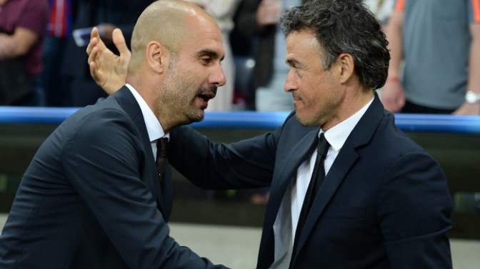 14-15赛季的欧冠半决赛,首回合恩里克执教的巴萨3-0击败瓜迪奥拉带领的拜仁,次回合拜仁3-2获胜,但巴萨以总比分5-3晋级。