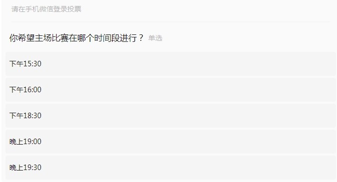 北京时间1月23日,中乙江西庐山足球俱乐部发布征集公告——针对新赛季主场比赛在哪个时间段进行,俱乐部发起投票,想听球迷们的意见。