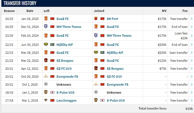 德转更新,原广州队、武汉三镇前锋艾菲尔丁自由身加盟上海海港。