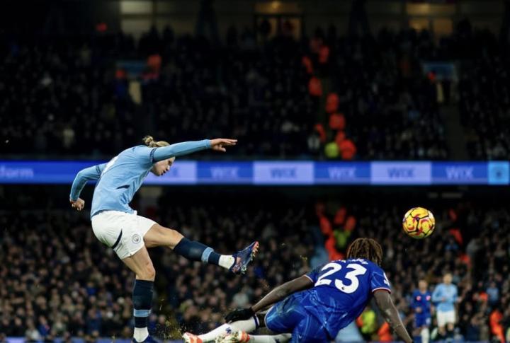在对阵切尔西的比赛中,哈兰德打入了反超比分的一球,最终帮助曼城在主场3-1击败切尔西。