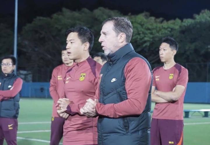 1月31日,在中国足球队官方发布的U20集结视频里,主教练久尔杰维奇在训练前给球员们训话。