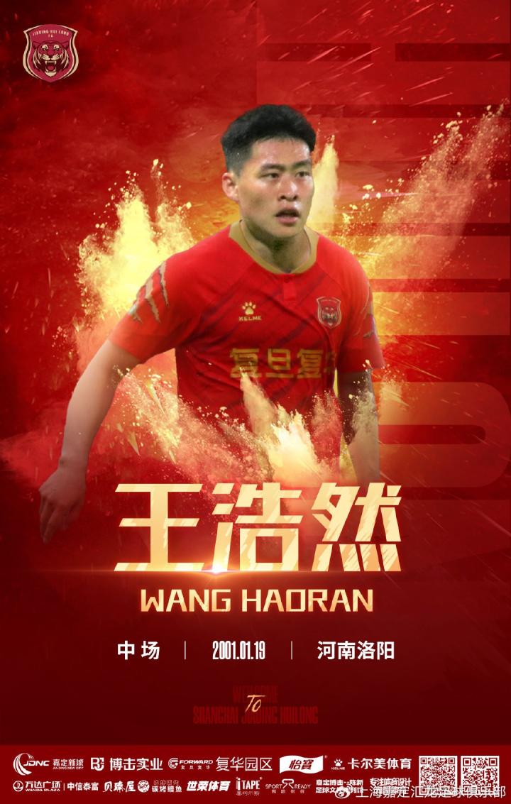 经与河南足球俱乐部友好协商,球员王浩然租借加盟上海嘉定汇龙足球俱乐部。