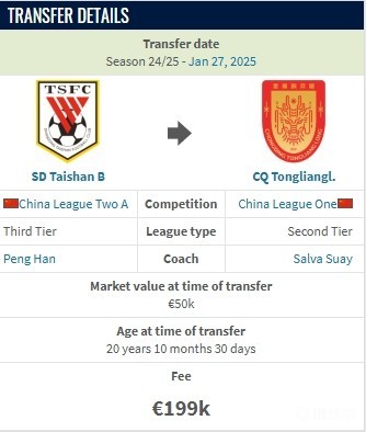 德转显示,张英凯加盟重庆铜梁龙的转会费为19.9万欧元,约合人民币150万元。目前张英凯的身价为5万欧元。