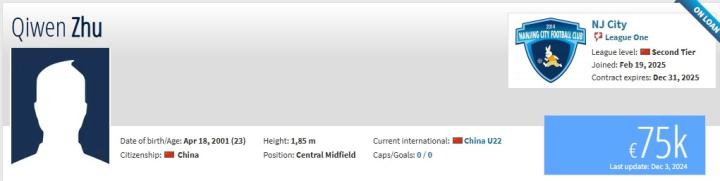 德转显示,南京城市续租上海申花中场朱启文一个赛季,目前球员的身价为7.5万欧元。